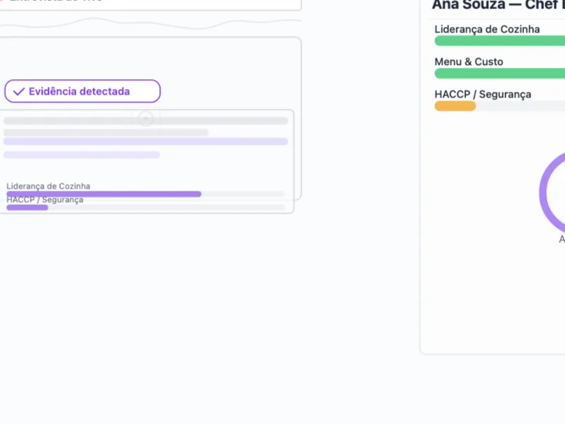 A IA do Recrutador é especialista em contratação. Da análise da vaga ao relatório final — critérios de avaliação, catálogo de competências, análise de currículo, entrevista em tempo real e extração de evidências. Tudo conectado, tudo com propósito.
